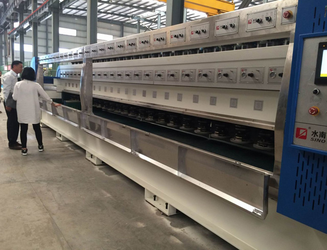 近期,泉州電視臺以“石材行業(yè)里的轉(zhuǎn)型升級”為主題,走訪多家石材行業(yè)的龍頭企業(yè),旨在了解大環(huán)境下的企業(yè)動態(tài)。作為國內(nèi)規(guī)模較大的石材機械生產(chǎn)公司,我司副總經(jīng)理陳鵬奇接受了記者的采訪。 陳總表示,在國際市場情況低迷,國內(nèi)石材行業(yè)產(chǎn)能過剩的大環(huán)境下,企業(yè)能做的就是從自身出發(fā),將生產(chǎn)加工各方面進行優(yōu)化升級,形成標準化精加工流水線的生產(chǎn)模式來突破自身瓶頸,從而獲得更高的市場占有率。同時,陳總還向記者介紹了優(yōu)化升級后的兩款新機型——全自動連續(xù)磨機、高效數(shù)控組合鋸,均為公司引進國外先進技術(shù),自主研發(fā)設計的新產(chǎn)品,集高效、節(jié)能、穩(wěn)定、環(huán)保于一身,讓客戶僅以進口設備三分之一的價格就能買到擁有國際行業(yè)標準的機臺,真正實現(xiàn)石材工業(yè)制造的國產(chǎn)化!
