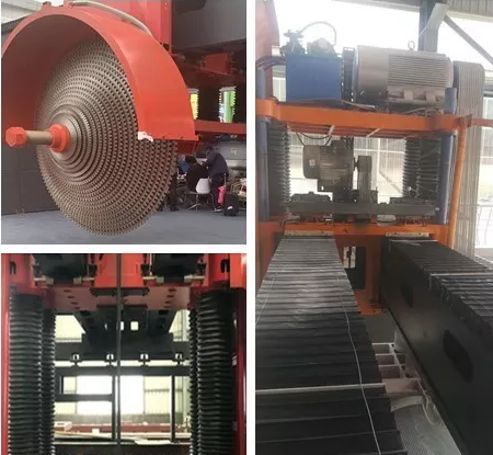 雙梁龍門切石機(jī)具有以下特點(diǎn): 1. 即可掛26片塔形片,又可掛13套大小片。片數(shù)更多,產(chǎn)量更高。相比常規(guī)多片橋切機(jī),可實(shí)現(xiàn)產(chǎn)量翻2-3倍; 2. 根據(jù)實(shí)際操作需要,可同時(shí)擺放2-4顆荒料進(jìn)行切割; 3. 超大行程,最大可切深1.6米,在一定程度上取代框架鋸,切割成本是框架據(jù)的三分之一。投資更省,為客戶創(chuàng)造更高價(jià)值; 4. 采用超薄鋸片及高效節(jié)能的電機(jī),實(shí)現(xiàn)了同樣產(chǎn)量,能耗更低,相比常規(guī)多片橋切,綜合成本可下降約30%; 5. 獨(dú)有的雙梁結(jié)構(gòu)及厚重的機(jī)身,使得切割穩(wěn)定性高,效果更好,精度更高,板面更平整,產(chǎn)量更高。