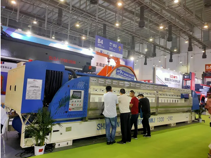 展會現(xiàn)場除新9代智能雙刀礦山機(jī)受參展者贊賞以外,本公司自主研發(fā)的雙梁龍門切石機(jī)和全自動連續(xù)磨機(jī)也是咨詢不斷。